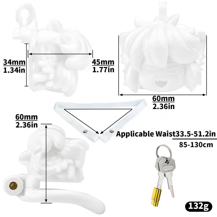FRRK 3D Printed Anime Chastity Cage with 4 Rings and Strap